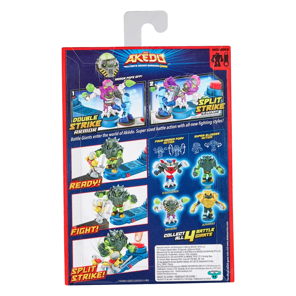 Prepare for all new supersized battle action with Akedo Battle Giants. These Arcade Warriors have double the defence with double strike armor! Hit them once to remove their armor then hit them again with a Split-Strike! There are also 2 new fighting styles – four-armed fury action and super slugger action – to level up your skill and strategy. Collect all 4 new Battle Giants!