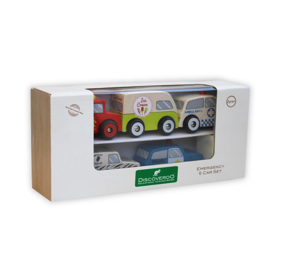 We have redesigned our previous car set and this brand new set includes the following 5 cars below for all sorts of emergencies: POLICE AMBULANCE WILDLIFE RESCUE FIRE ENGINE ICE CREAM VAN They are made of Plantation Tea Wood. Each car measures: 8cm x 6cm x 5.cm. These are suitable for 18 months and over – there are no parts that protrude or can come off.