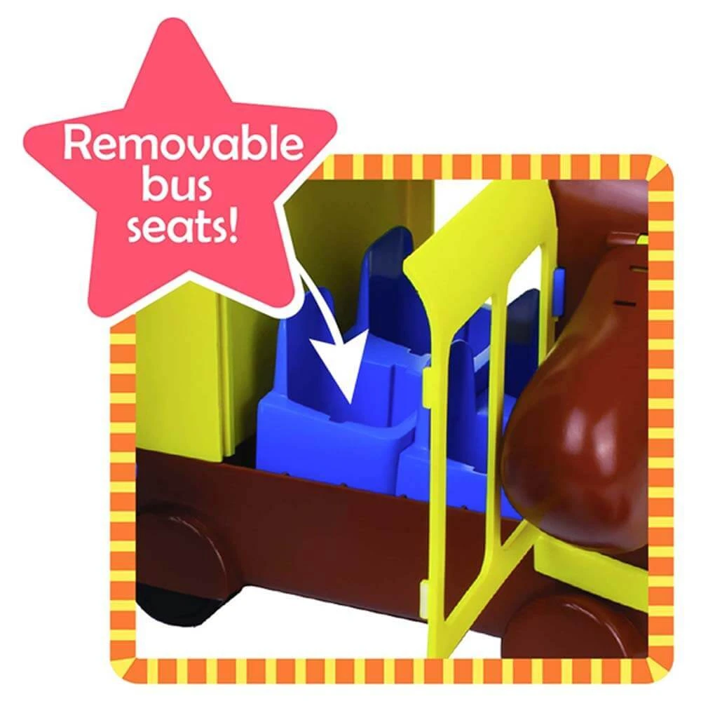 Open the side of the bus for move pretend play: take out the seats and set up the play park.