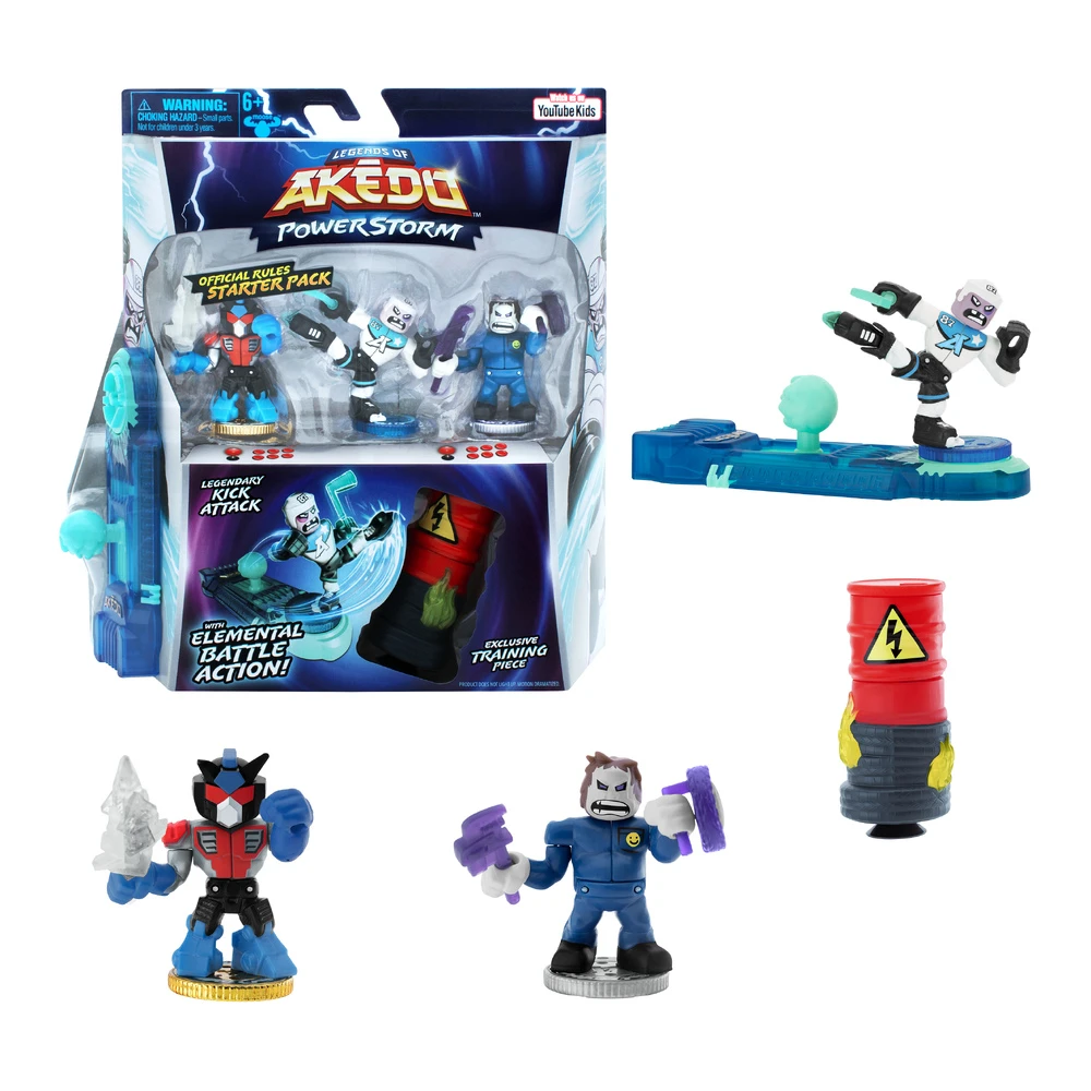 Prepare for battle with Legends of Akedo Power Storm Starter Pack. Kids can train to become a legend of Akedo and develop their skills with the bonus training piece. – The Flame Strike Barrel. It’s perfect for getting your warriors match ready as they perfect the ultimate Split Strike. This Starter Pack includes 3 Akedo Warriors: Recharge, Rip Off and one Legendary Warrior with a real kicking action – High Stick! This awesome warrior can deliver a Split Strike with their powerful blow. Kids can place their warriors on the pack’s exclusive Joystick Controller and train their team for next level battling action!