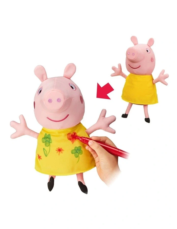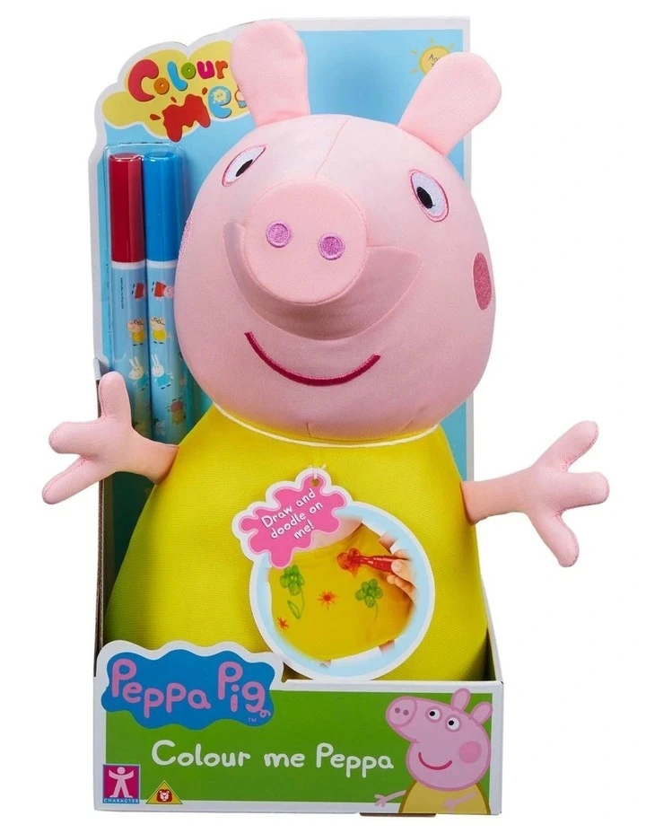 Have lots of colouring fun with Colour Me Peppa! This Peppa Pig Soft Toy features classic Peppa Pig styling and measures 30cm tall. Draw and doodle on Peppa and her dress. When youve finished, simply wash her and start again! Includes 2 pens. Make sure you use these or other washable pens only. Encourages creative and imaginative play. Machine wash Peppa separately, hang to dry and reshape.